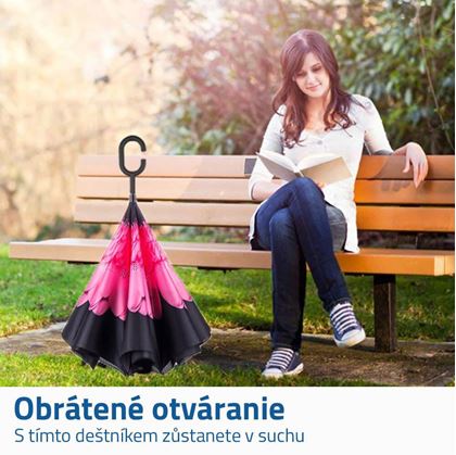 Je veľmi praktický, to obrátané zatváranie je úžasné, farba kvetiny oživuje celý dáždnik, je perkfektnýýý