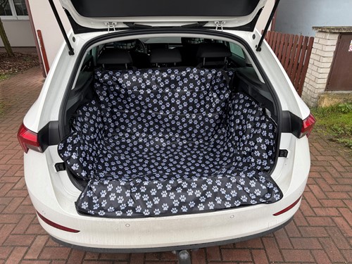 Pěkně sedí do kufru Octavia combi, pevné lepící pásky a krásný motiv tlapek