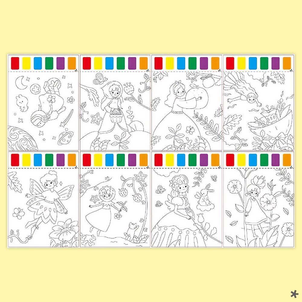 • 8 maľovacích štvrtiek s veselými dizajnmi zvieratiek, víl a morských živočíchov