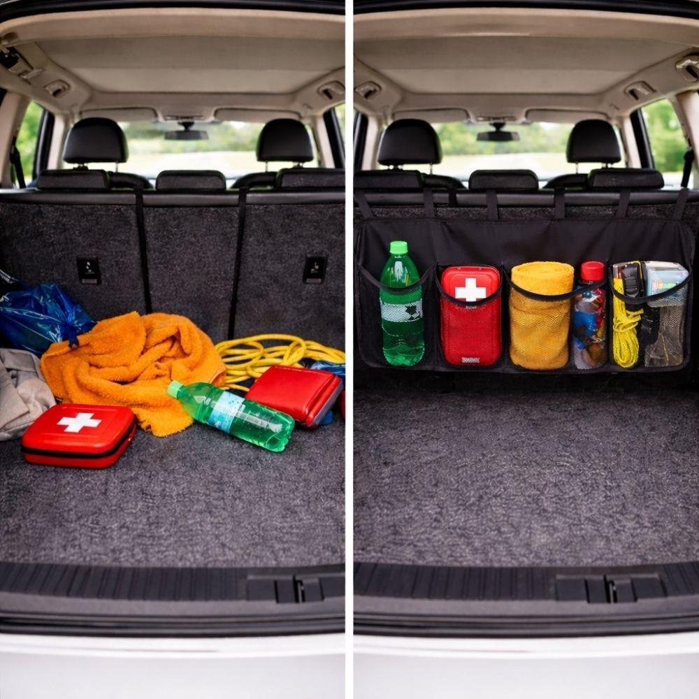 Válejú sa vám v aute fľaše, lekárnička alebo nákup? Tento organizér na zadné sedadlá vytvorí behom pár sekúnd prehľadný úložný priestor a udrží veci bezpečne na mieste.