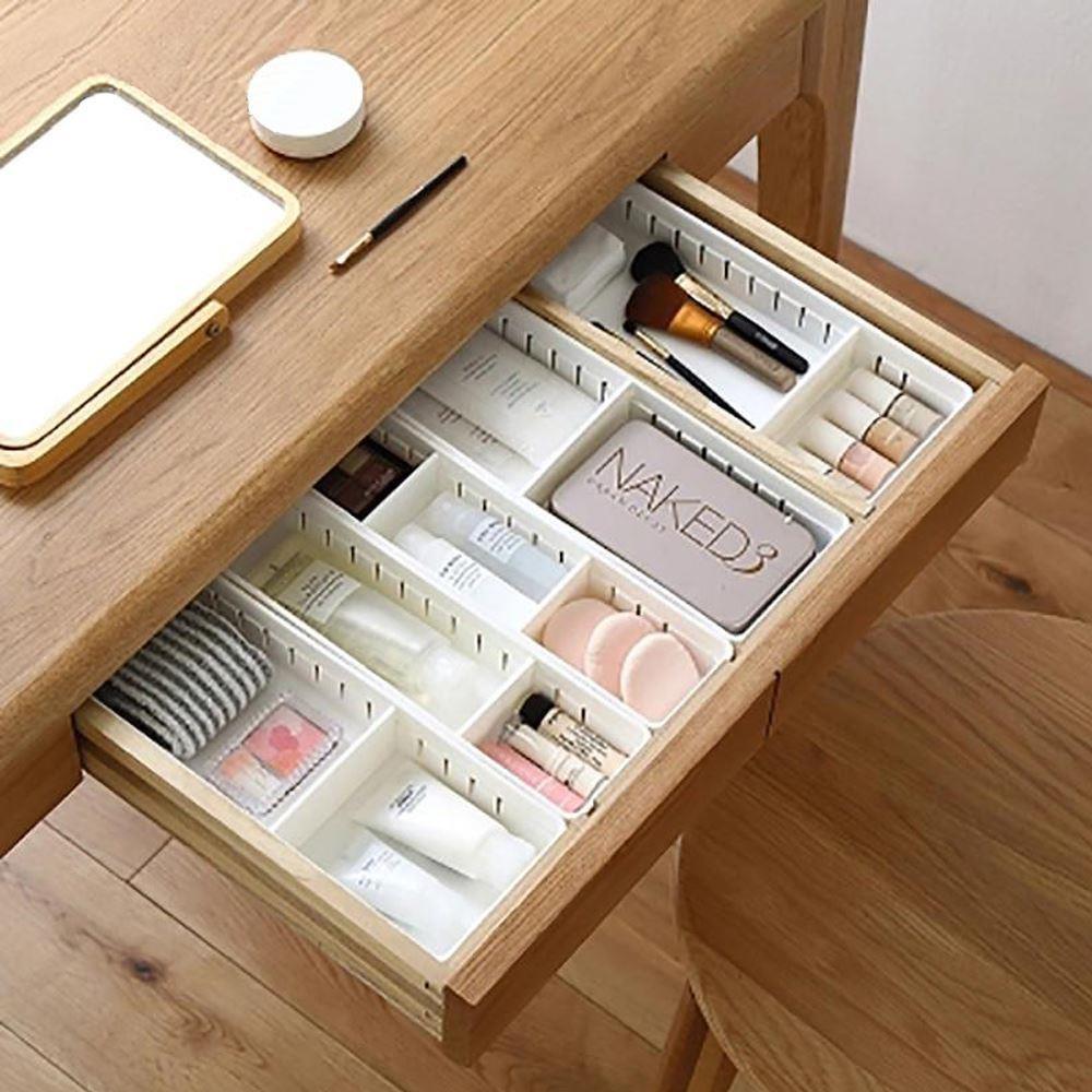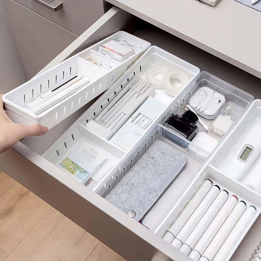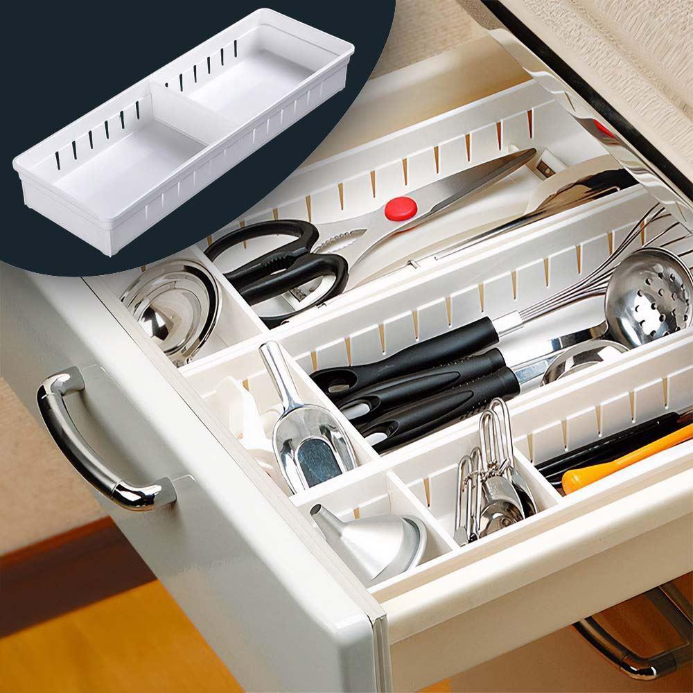 Ak potrebujete usporiadať veci v kuchynskej zásuvke, v zásuvke v kúpeľni alebo v nočnom stolíku, tento organizér je tou najlepšou voľbou. Organizér je vyrobený v neutrálnej bielej farbe, vďaka čomu nepôsobí rušivo a ladí s akoukoľvek zásuvkou. Vďaka jeho variabilite a praktickosti si tento organizér okamžite obľúbite.