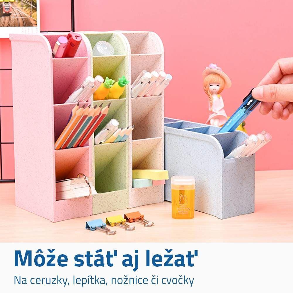 Priehradky sú skosené a teda nebude nič vypadávať. Sú aj hlboké a potom tam bez problémov umiestnite skutočne všetko. Nožničky, perá, lepidlá, rôzne kancelárske sponky- všetko na čo si spomeniete. Je vhodný na kancelársky stôl do pracovne aj na písací stôl do detskej izby.