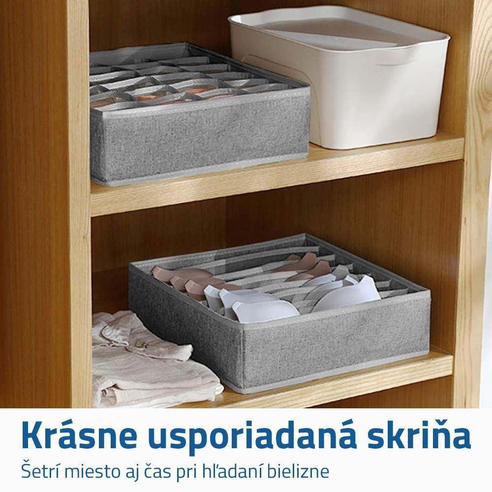 Kúpte si tento organizér na spodnú bielizeň, vďaka ktorému bude udržiavanie poriadku v šatníku hračka. Jednoducho ho vložte do zásuvky alebo na poličku a naplňte ho vecami. Vďaka dodatočnej možnosti stohovania ušetríte nielen čas strávený hľadaním, ale aj miesto, ktoré by inak veci zaberali. Zažite pocit, že všetko má svoje miesto, a venujte svoj čas dôležitejším veciam než večnému upratovaniu.