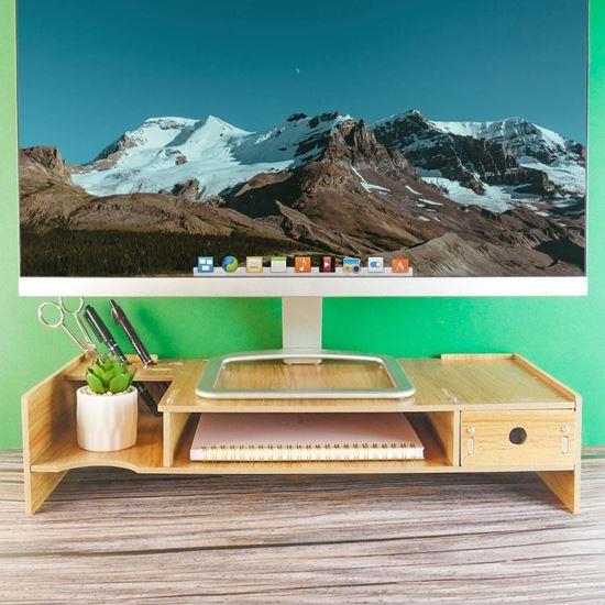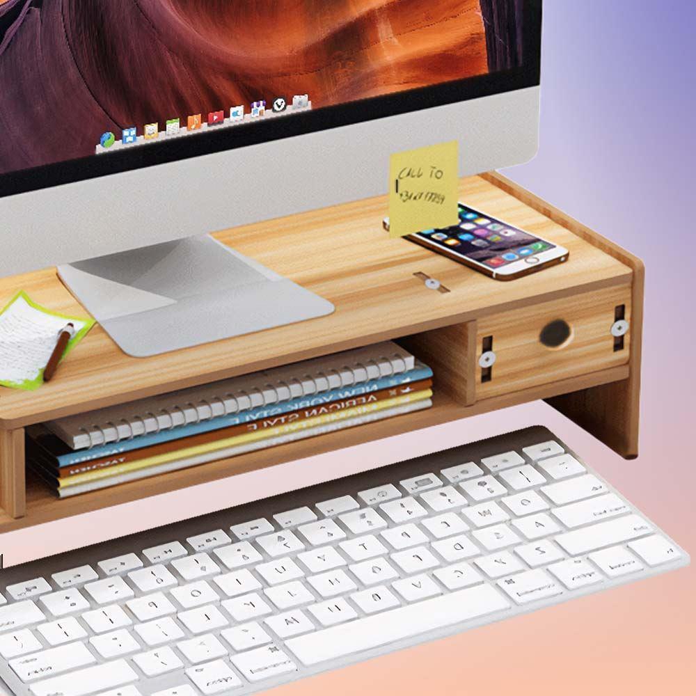 Vďaka svojej multifunkčnosti poskytuje dostatok priestoru na uloženie kníh, telefónu a ďalších kancelárskych potrieb. Organizér má jednu zásuvku a dve priehradky, ktoré pomáhajú udržať pracovný stôl čistý a usporiadaný. Otvory na ceruzky pridávajú ďalšie praktické využitie tohto elegantného a funkčného stojana na monitor.