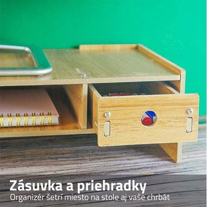 Organizér pod monitor je ideálnym doplnkom pre každé pracovné prostredie. Zvýšená poloha monitora či laptopu zaisťuje správnu ergonómiu, čo výrazne znižuje napätie krčných svalov a chrbta pri práci z domu.
