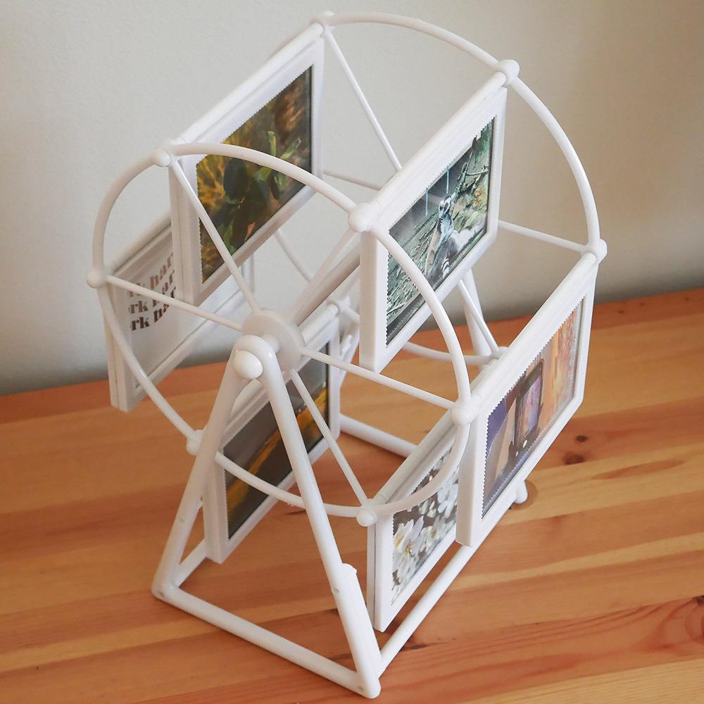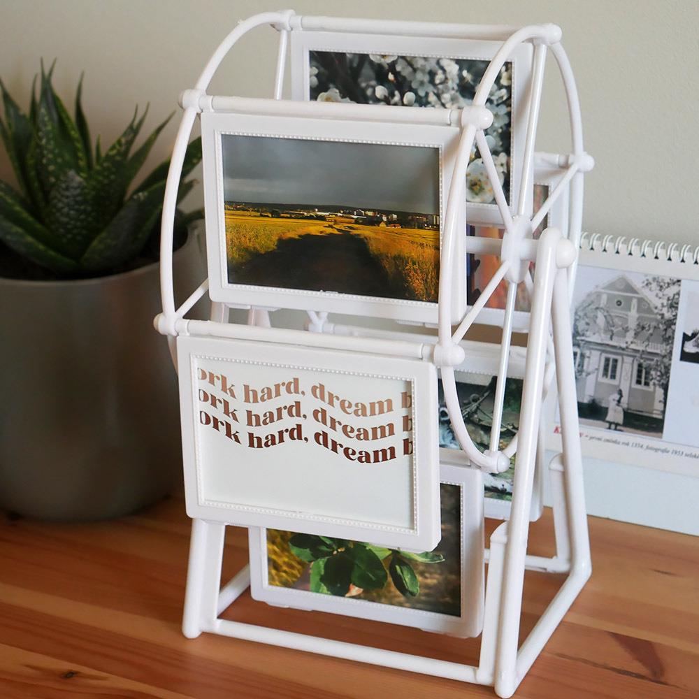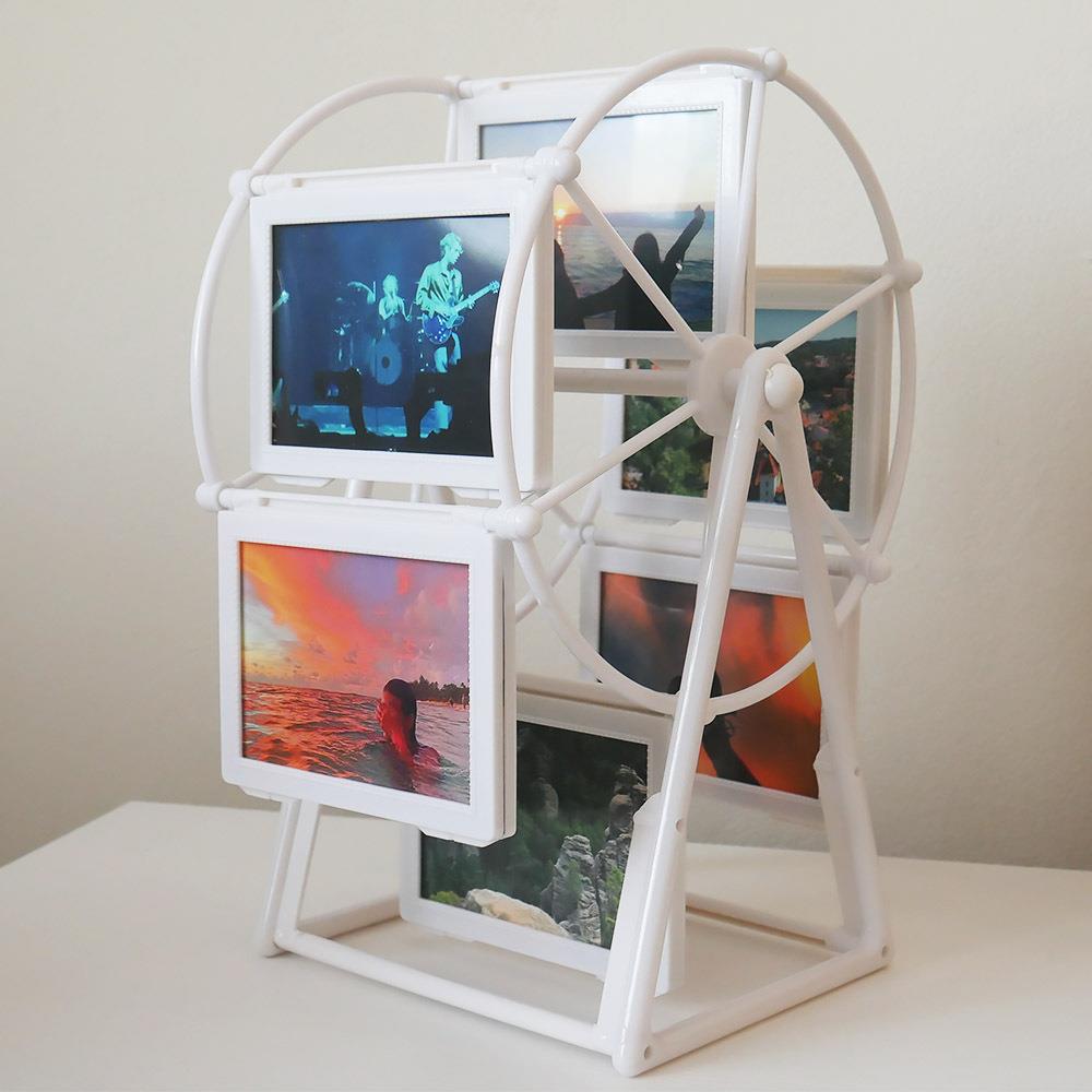 Tento fotorámik je skvelým retro doplnkom pre všetkých milovníkov neobvyklých rámčekov na fotografie – jeho tvar ruského kolesa zaisťuje priestor pre 12 snímok bez toho, aby zaberali väčší priestor. Stačí len zatočiť, a behom chvíľky sa vrátite do minulosti, k spomienkam, ktoré hrejú pri srdci.
