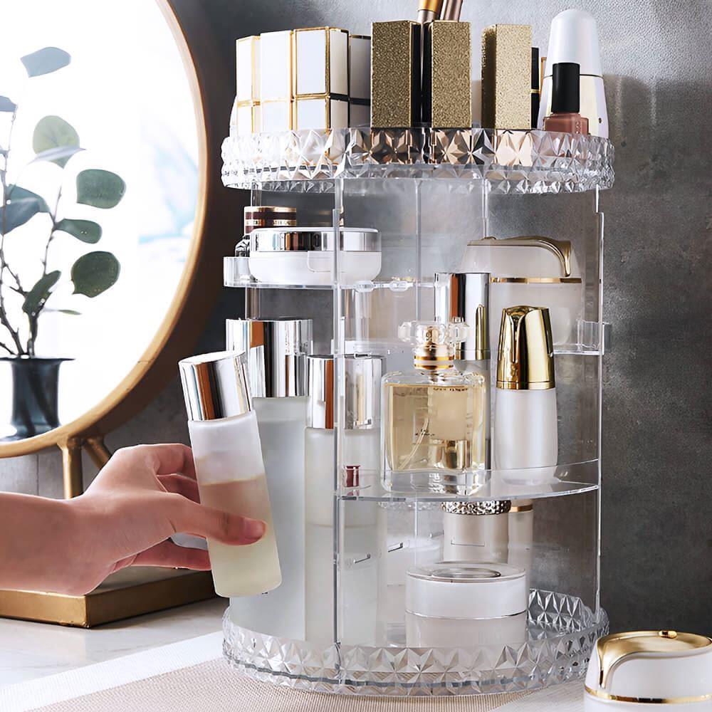 Tento otočný stojan na kozmetiku razom premení každú poličku v kúpeľni alebo kozmetický stolík na miesto, ktoré doslova srší profesionálnou organizáciou. Už žiadne popadané a rozbité fľaštičky, už žiadne poznámky, že toho máte doma príliš. Skoncujte s neporiadkom a urobte si miesto aj na ten produkt, ktorý si už nejaký čas prajete kúpiť – do stojana sa zmestí.