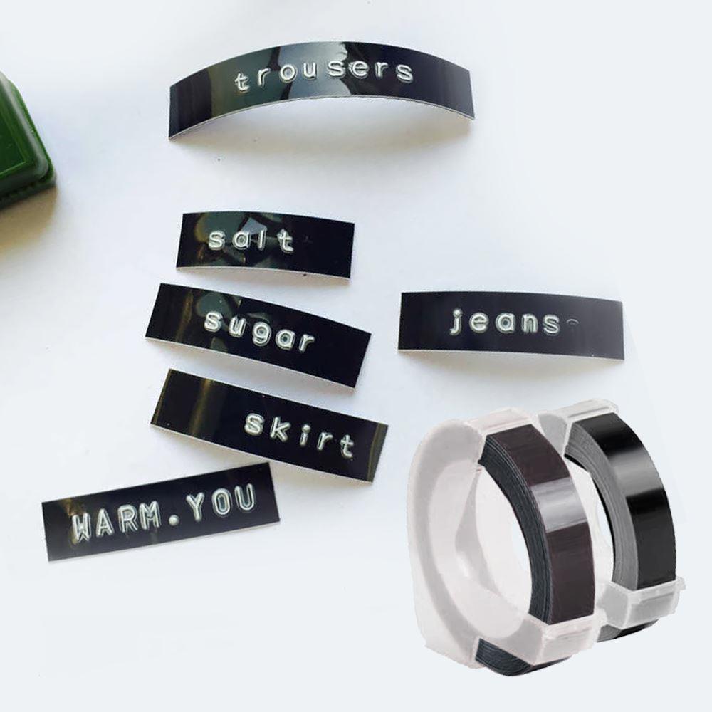 Na čiernu pásku vyrazíte vami zvolené písmená alebo číslice. Pásku jednoducho nasuniete do štítkovača. Hotový nápis štítkovač sám odstrihne a je pripravený na nalepenie. 3D nápisy na čiernych štítkoch vyzerajú moderne a sú aj praktickým vylepšením.