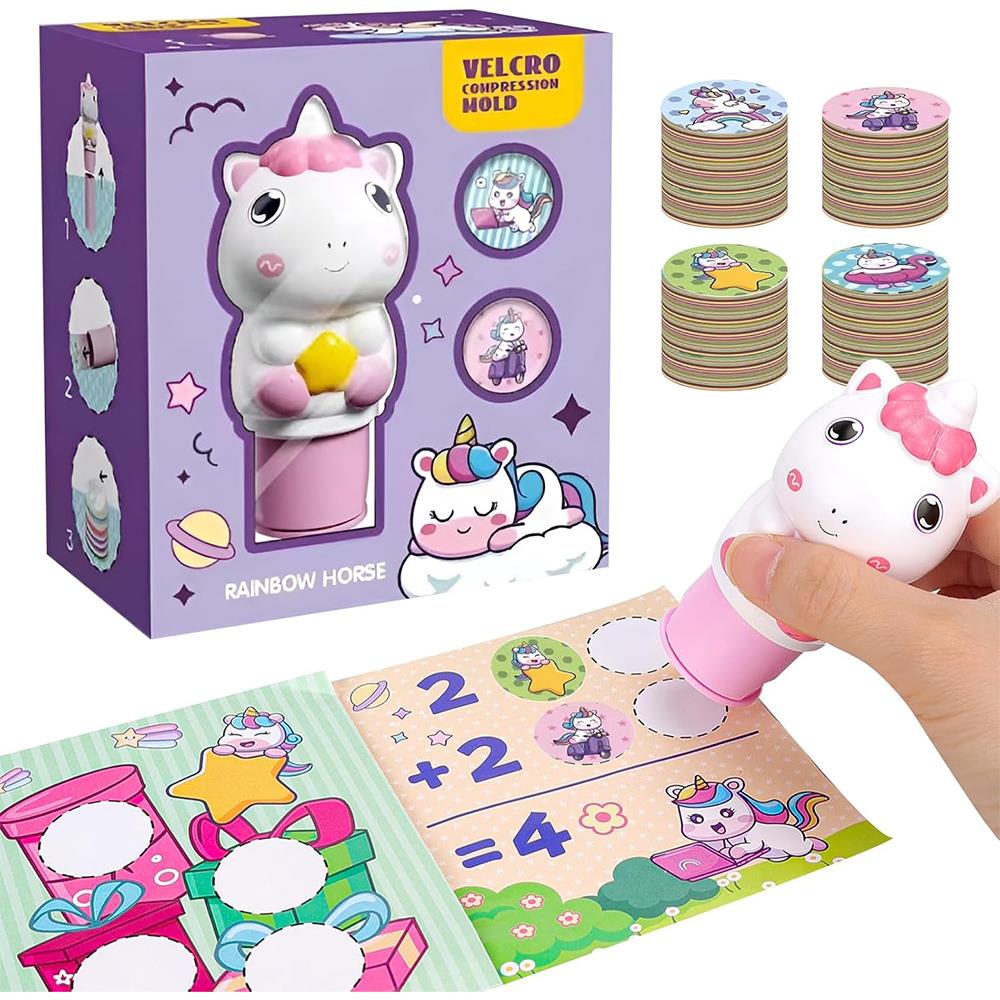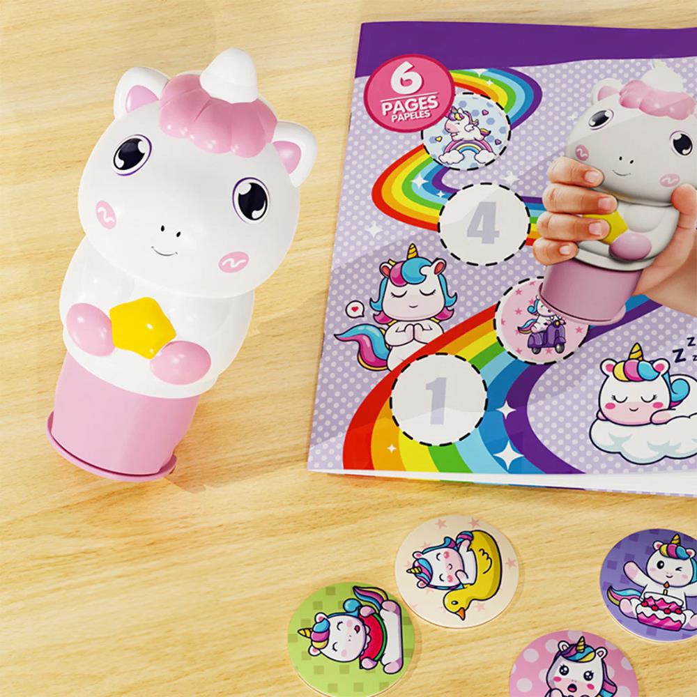 Toto nálepkové razítko je splneným snom každého malého kreatívca! Roztomilé razítko v sebe ukrýva kúzlo – každé razítko totiž zanechá farebnú, samolepiacu stopu s obrázkom. Deti si s ním môžu ľahko ozdobiť zošity, denníky, priania alebo si len tak hrať a vytvárať vlastnú zbierku nálepiek. Kúzelné razítko možno využiť aj na odmeny pre malých školákov.