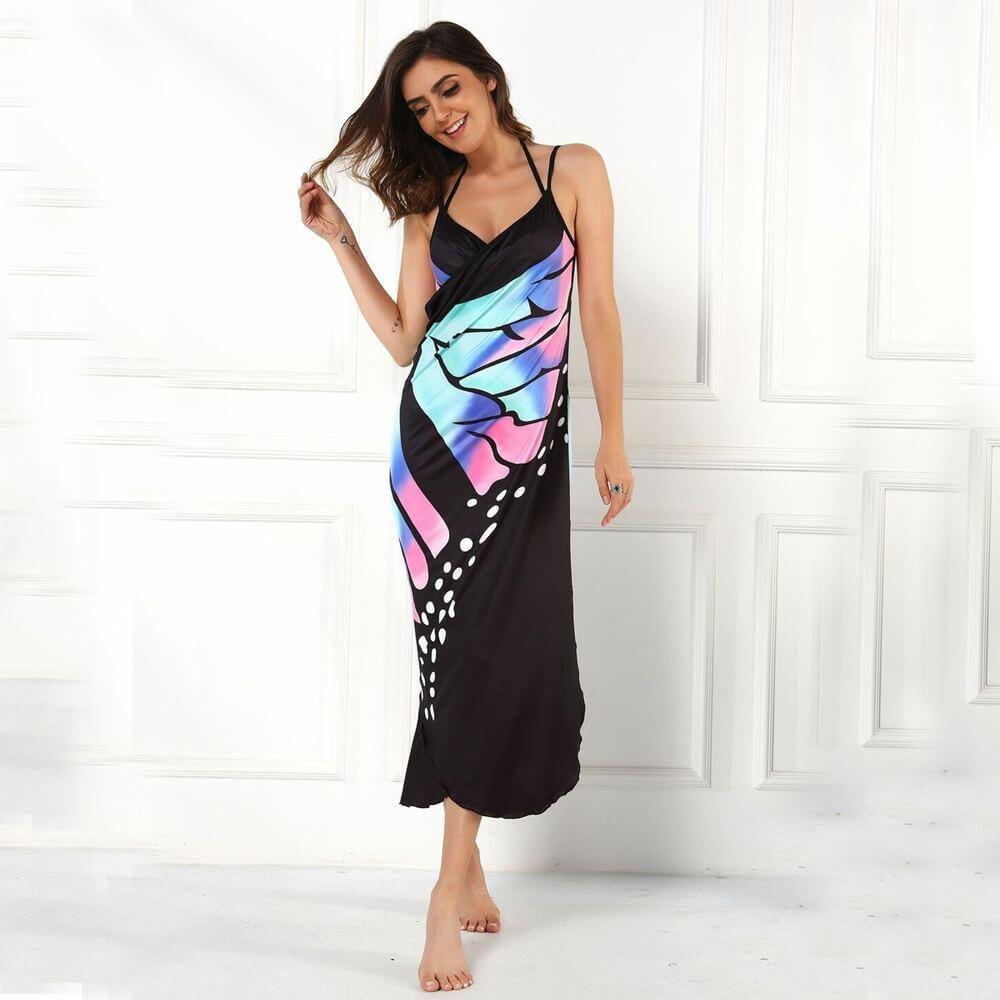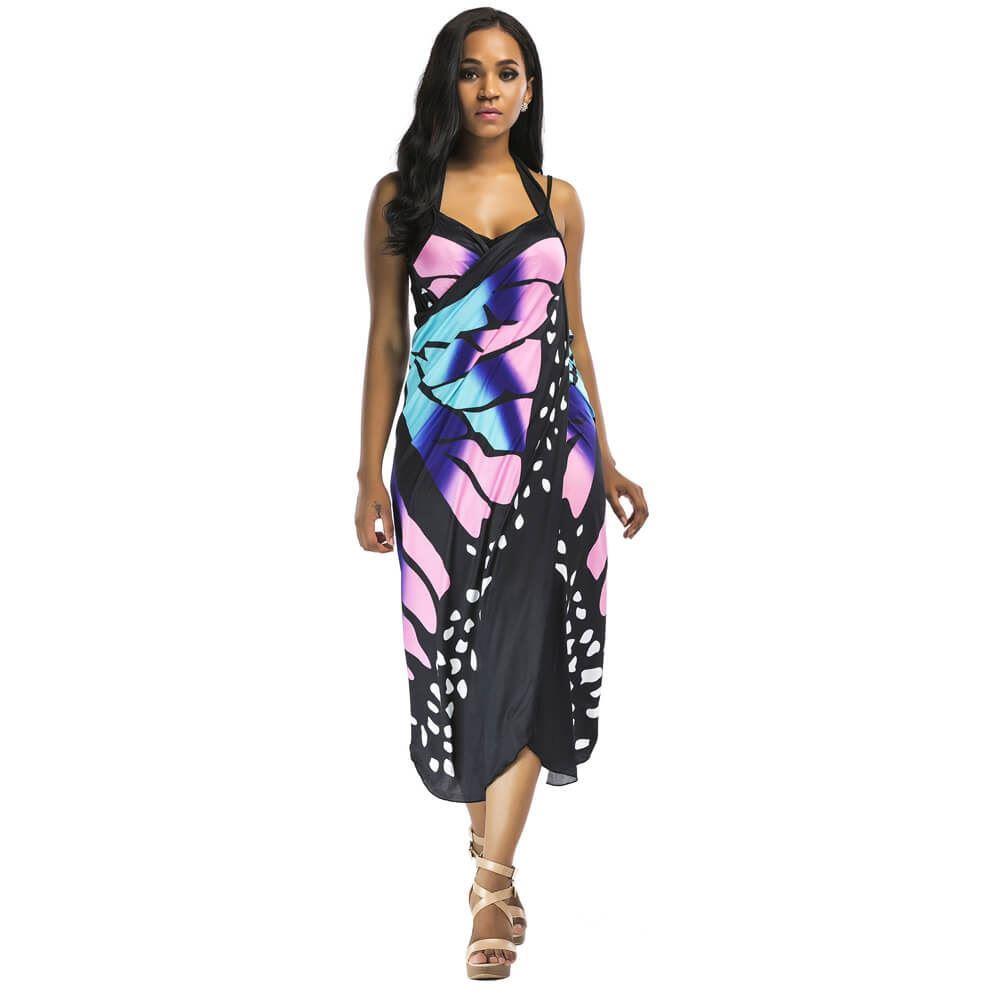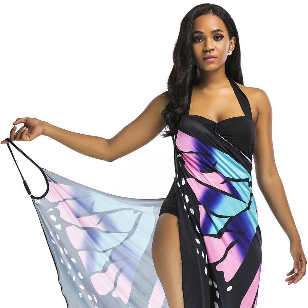 Staňte sa neprehliadnuteľnou ikonou na pláži! Plážové šaty s výrazným vzorom motýlích krídel povýšia váš celkový vzhľad a vy sa budete cítiť razom ako kráľovná pláže. Zavinovaciu tuniku prehodíte cez plavky a môžete smelo vyraziť k moru či relaxovať s knihou pri bazéne. Módnym doplnkom zakryjete aj prípadné nedostatky. Strihom však zavinovacie šaty krásne lichotia postave. Jemné špagetové ramienka a výstrih do V všetko len perfektne dopĺňajú.
