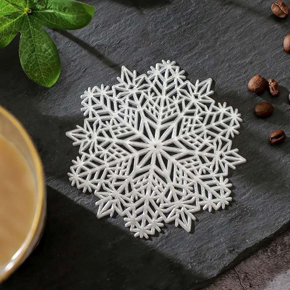 Tento podšálka, ktorý vyzerá ako snehová vločka, je skvelou dekoráciou nielen vianočného stola. Je vyrobený z PVC, takže na rozdiel od podšálok z iných materiálov drží svoj tvar a sám od seba nekĺže po stole. Hodí sa ako do vianočne vyzdobených priestorov, tak aj tam, kde preferujú minimalizmus, pretože motív vločky je veľmi jemný a neruší.