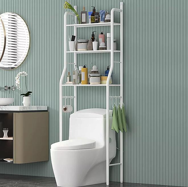 • Praktický policový regál nad toaletu šetrí miesto
