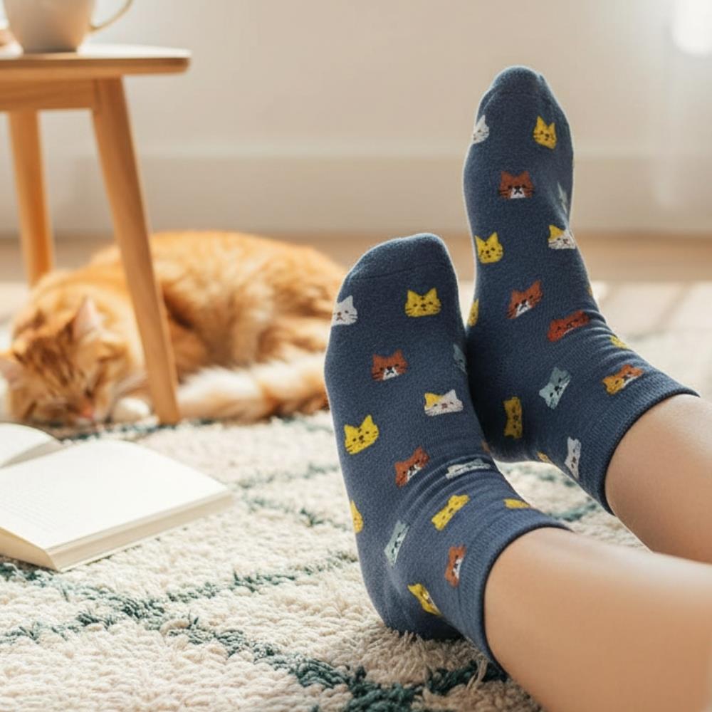 Hrejivé ponožky s nápadom. Ponožky s mačičkami nadchnú každého milovníka mačiek. Originálny vzhľad určite každého zaujme. Veselé ponožky zahrejú a zároveň urobia parádu. Kvalitné prevedenie a príjemný materiál zaručí, že sa vám ponožky budú skvele nosiť.