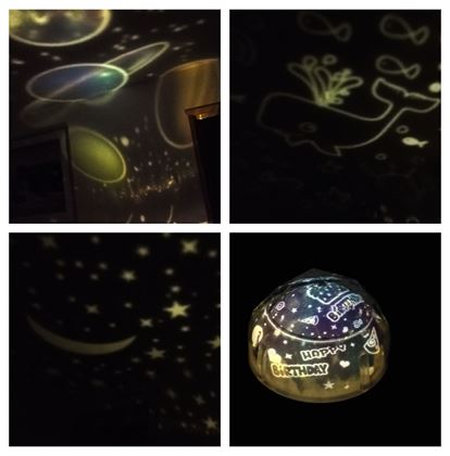 Nechajte deti zaspávať pod hviezdnou oblohou. Projektor premietne hviezdnu oblohu, ale vďaka vymeniteľným páskam si premietaný motív jednoducho zmeníte. Na výber máte hviezdy, planéty alebo rybičky. Na vytvorenie perfektnej atmosféry na oslave narodenín je posledným motívom torta a nápis „happy birthday“. Zaželajte oslávencovi štýlovo.