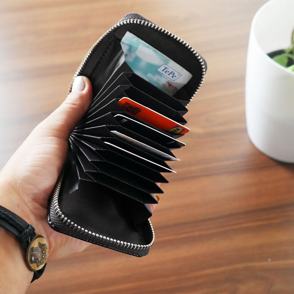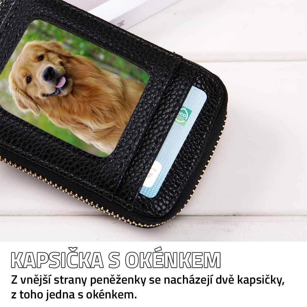 Mini peňaženka v čiernej farbe je štýlový doplnok pre moderné ženy aj mužov. Teraz si môžete všetky peniaze a dôležité doklady prehľadne uložiť na jedno miesto. Na vonkajšej strane peňaženky sú dve kapsičky, z toho jedna s okienkom. Tam vložte napríklad vašu obľúbenú fotku. Vo vnútri peňaženky je k dispozícii ďalších 11 priečinkov, do ktorých sa pohodlne zmestia nielen peniaze, ale aj kreditné karty, doklady, zľavové kartičky, ale napríklad aj dôležité vizitky.