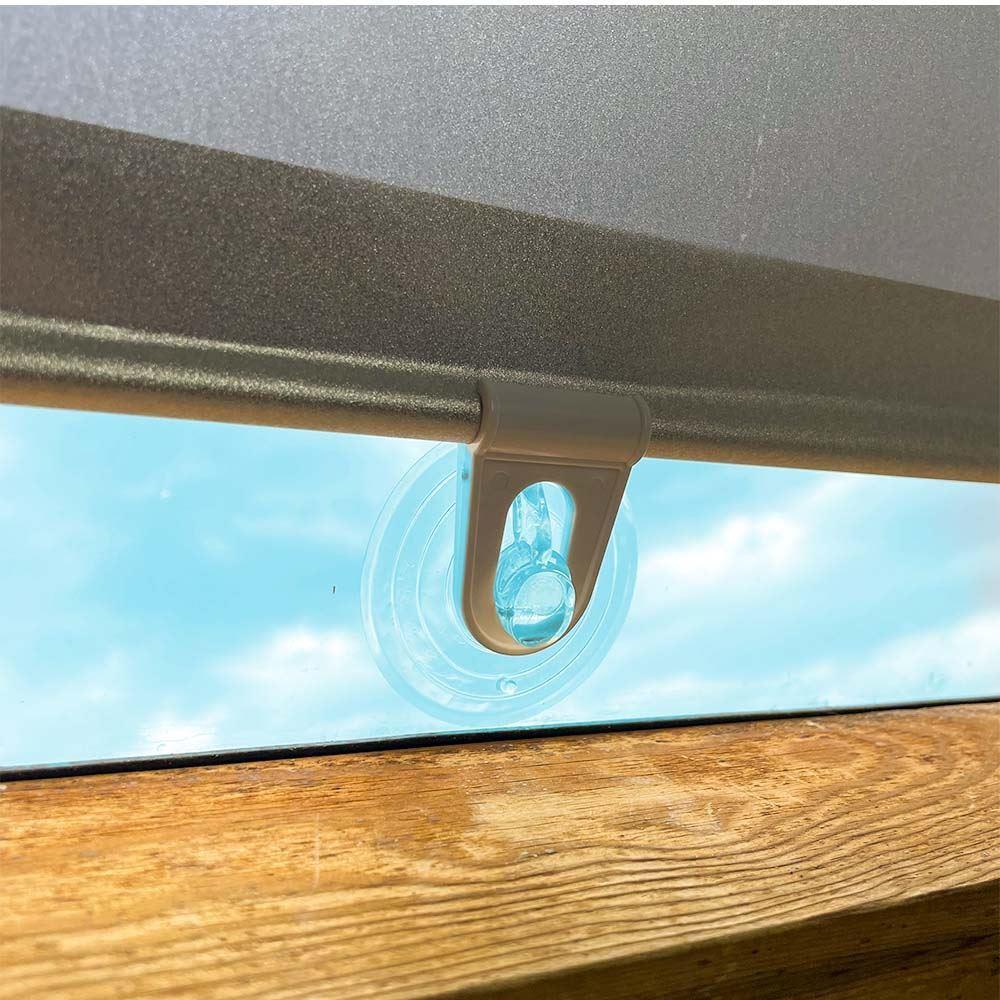Uchytenie pomocou prísaviek je jednoduché a nevyžaduje žiadne vŕtanie ani lepenie, takže clonu ľahko pripevníte aj napr. na strešné okná. Polopriehľadný materiál poskytuje príjemný tieň bez úplného zatemnenia, takže si stále užijete denné svetlo.