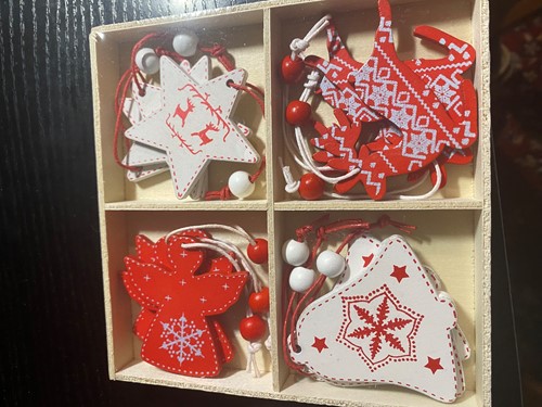• 12 ks drevených ozdôb - vianočný mix