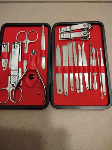 Na ruky a nohy použite klieštiky na nechty, ktorými upravte ich dĺžku, pilníkom spilujte ich tvar a odstráňte nečistoty za nechtami. Ďalej sa postarajte o kožičku. Kliešťami na kožičku a zrezávačom ju upravíte podľa vášho priania. Potom ju ešte môžete zatlačiť zatlačovačom. V sade nechýba ani pinzeta na odstránenie chĺpkov a nožnice.