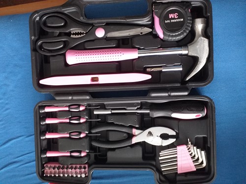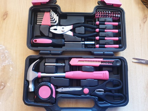 Přítel si teď půjčuje nářadí ode mně, a vůbec mu nevadí, že je růžové :D je tam prostě všechno.