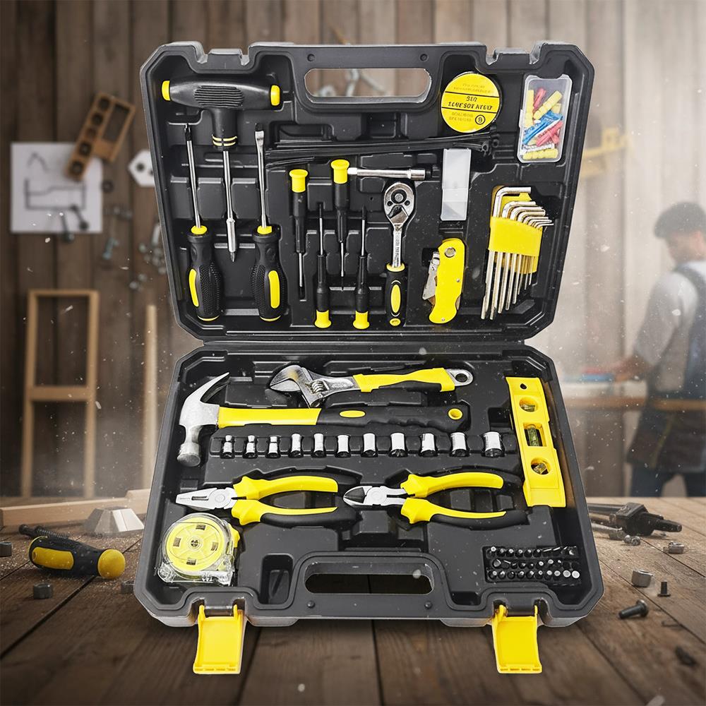Táto univerzálna sada náradia je snom každého muža, ktorý chce mať všetko po ruke, kedykoľvek je potrebné niečo utiahnuť, privŕtať, opraviť alebo zložiť. Pevný kufor ukrýva desiatky praktických nástrojov prehľadne usporiadaných tak, aby bola práca rýchla a efektívna. Od skrutkovačov a klieští, cez račňu s hlavicami až po vodováhu či batériový tester – nič tu nechýba.