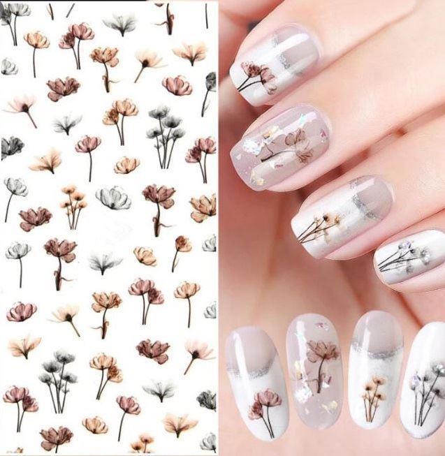 Sada samolepiek na nechty - 79 ks lúčne kvety