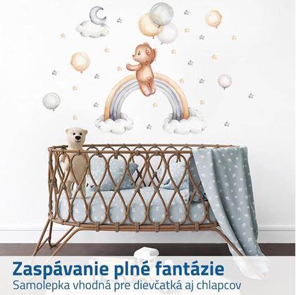 Dotiahnite výzdobu detskej izbičky k úplnej dokonalosti! Táto sada s rozkošným medvedíkom, obláčikmi a hviezdičkami poteší každého malého milovníka medvedíkov. Ideálne umiestnenie bude priamo nad detskú postieľku. Medvedík tak bude na vaše dieťa dohliadať a spoločne zaspávať. Samolepka s medvedíkom krásne podporí detskú fantáziu pri zaspávaní i pri hraní.