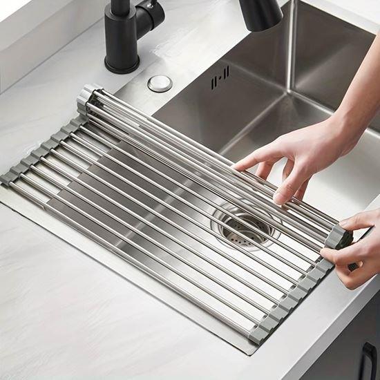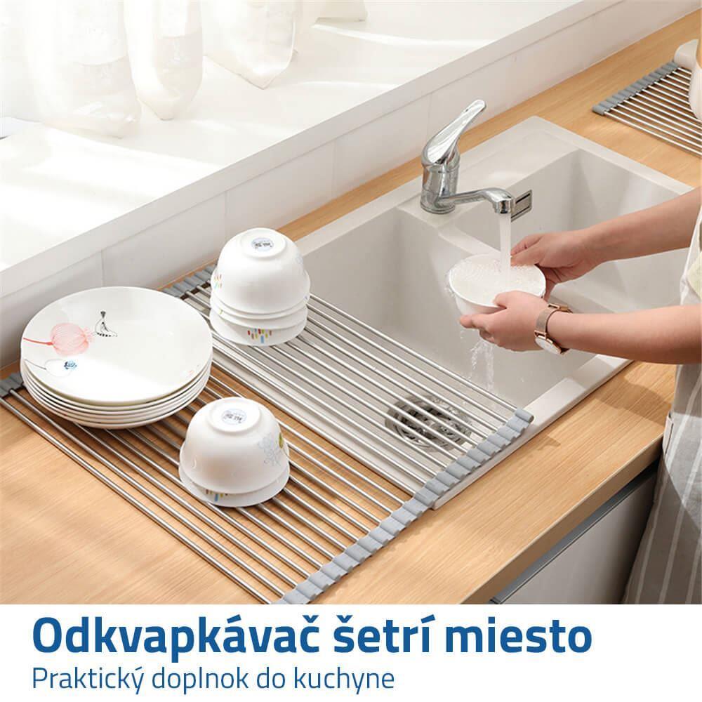 Odkvapkávač sa ľahko rozkladá a skladá. Na jej zloženie nepotrebujete žiadne náradie ani nástroje, stačí ju rozložiť a položiť na drez. Po zložení ho zrolujte a položte kamkoľvek. Nezaberá takmer žiadne miesto, a tak ho môžete mať vždy po ruke.