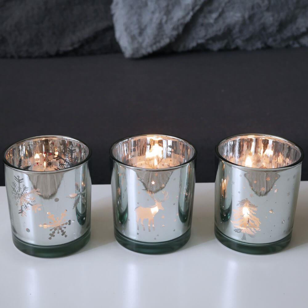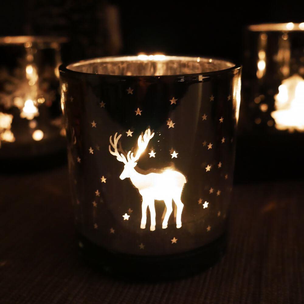 Sklenený vianočný svietnik na čajovú sviečku - soby
