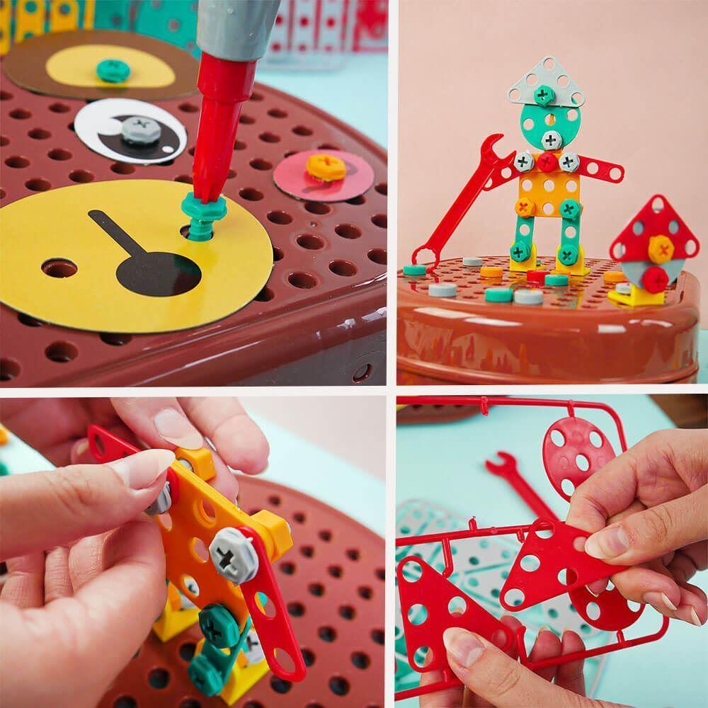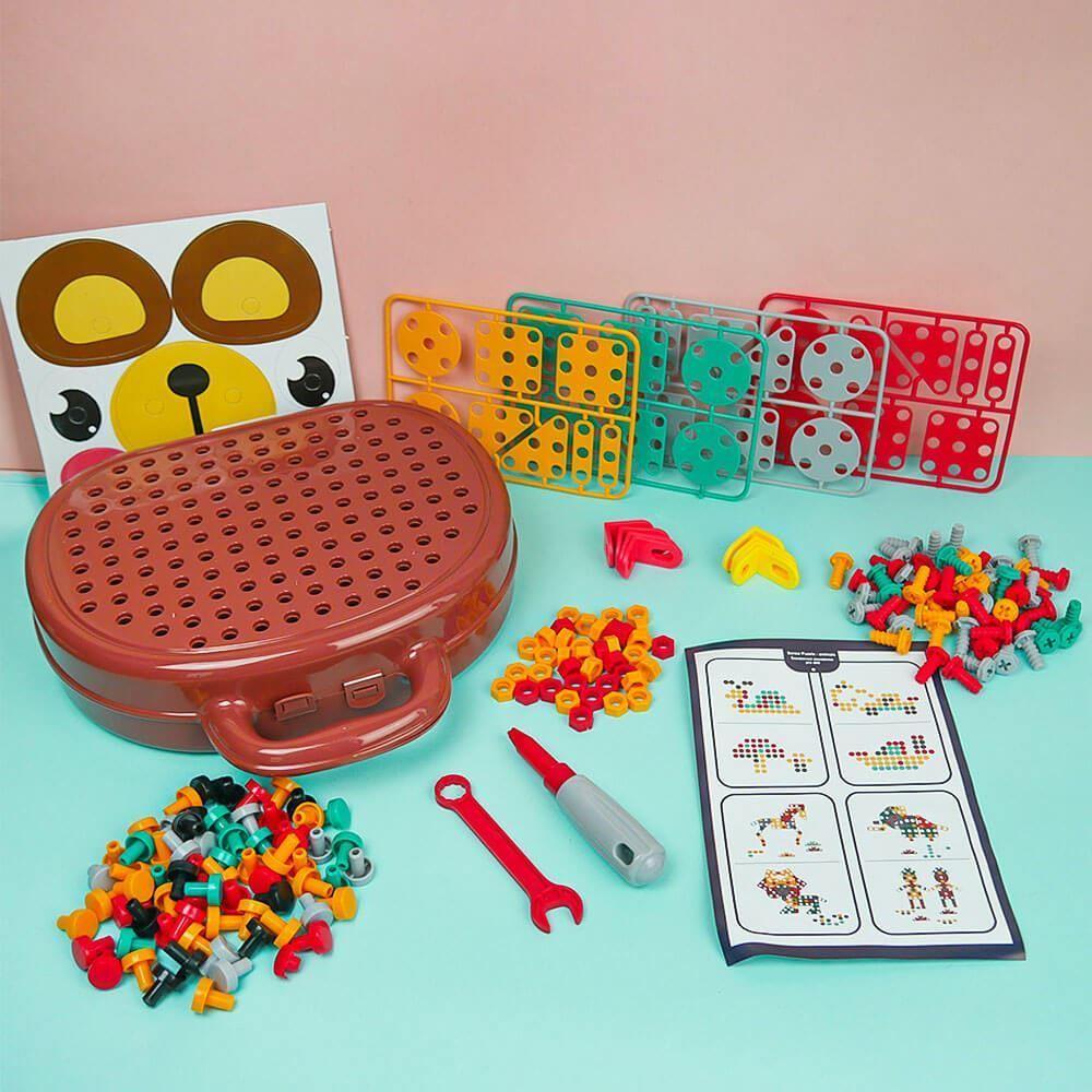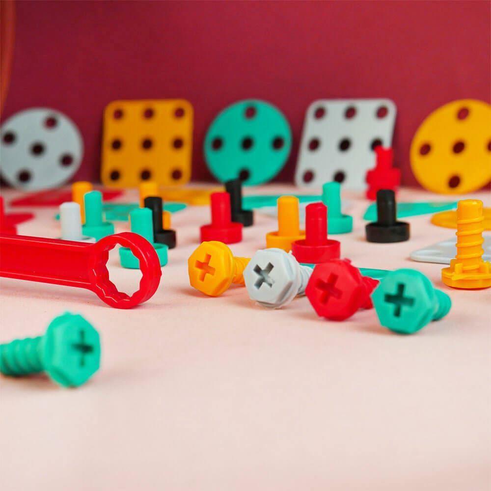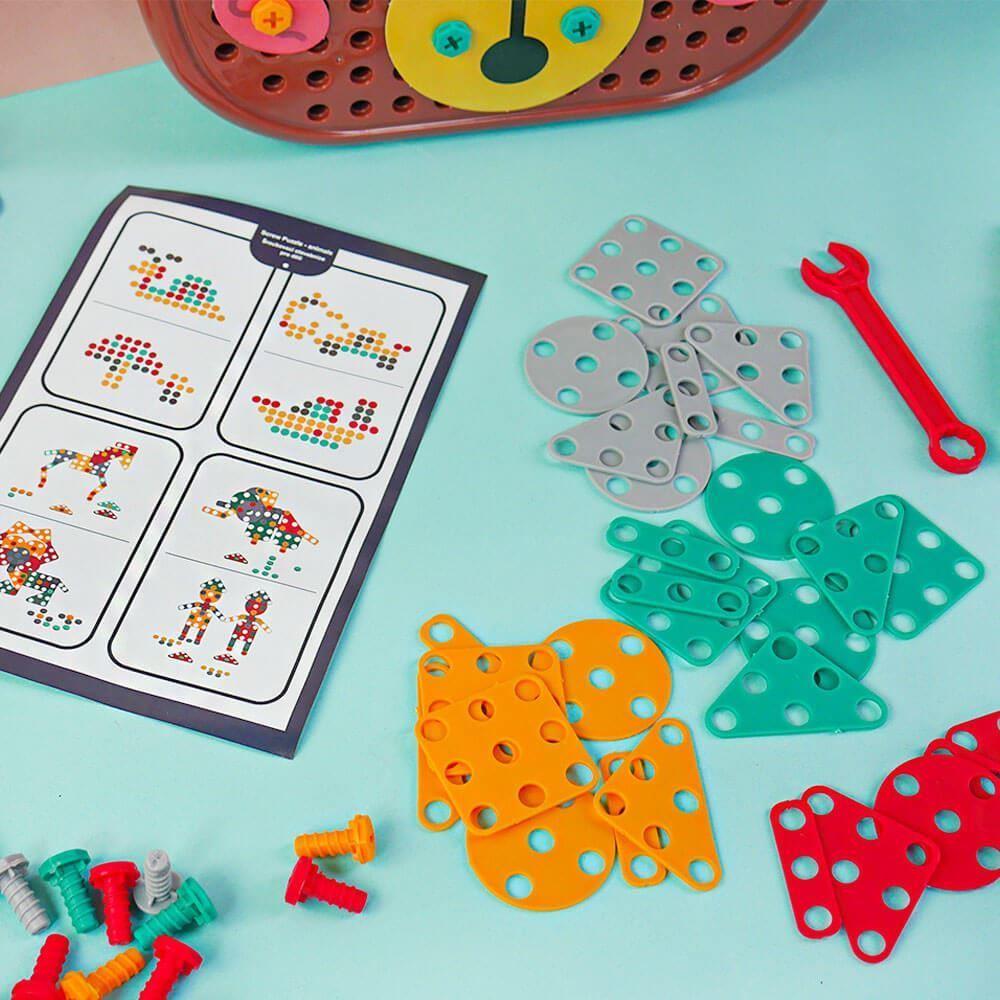 Hľadáte hračku, ktorá zabaví vaše deti a zároveň podporí ich vývoj? Skrutkovacia stavebnica pre deti je skvelým nástrojom, ako rozvíjať ich jemnú motoriku a technické zručnosti. S touto stavebnicou môžu vytvárať rôzne tvary a konštrukcie pomocou skrutiek a náradia, čo podporuje ich kreativitu aj predstavivosť. V balení nájdu tiež manuál so šablónami, ktoré im môžu pomôcť pri tvorbe rôznych skrutkovacích výtvorov.