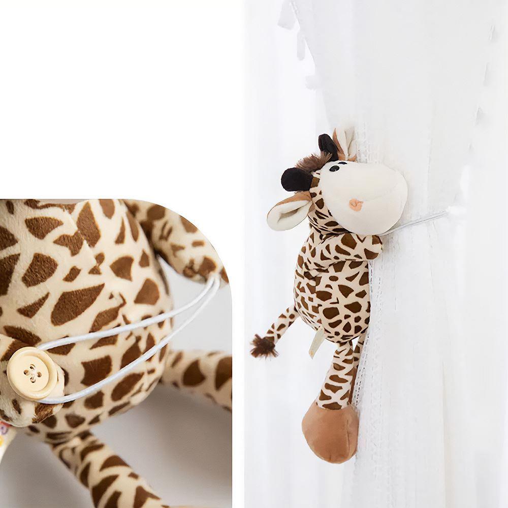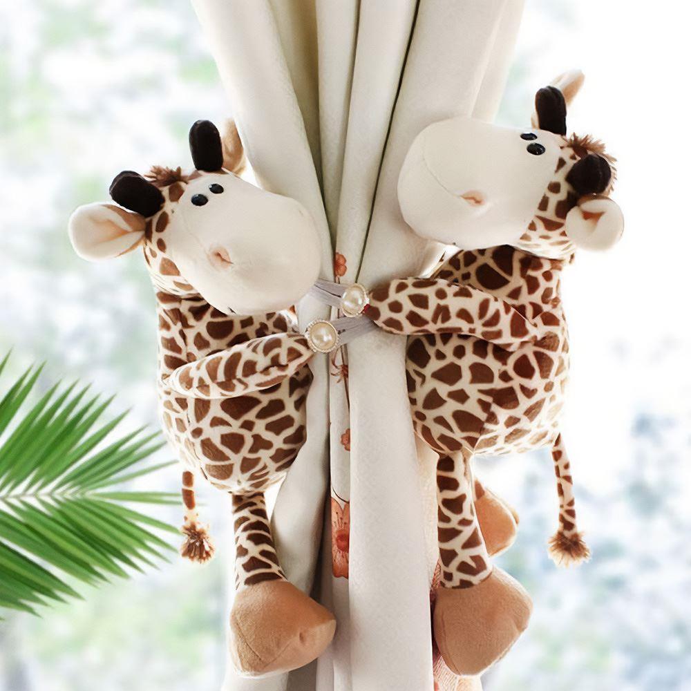 Detská spona na záclony v tvare plyšovej žirafy poskytuje nielen praktické, ale pre malé deti aj estetické riešenie na uväzovanie záclon na oknách detskej izby. Spona je vyrobená z mäkkých materiálov, je ľahká a príjemná na dotyk aj na pohľad.