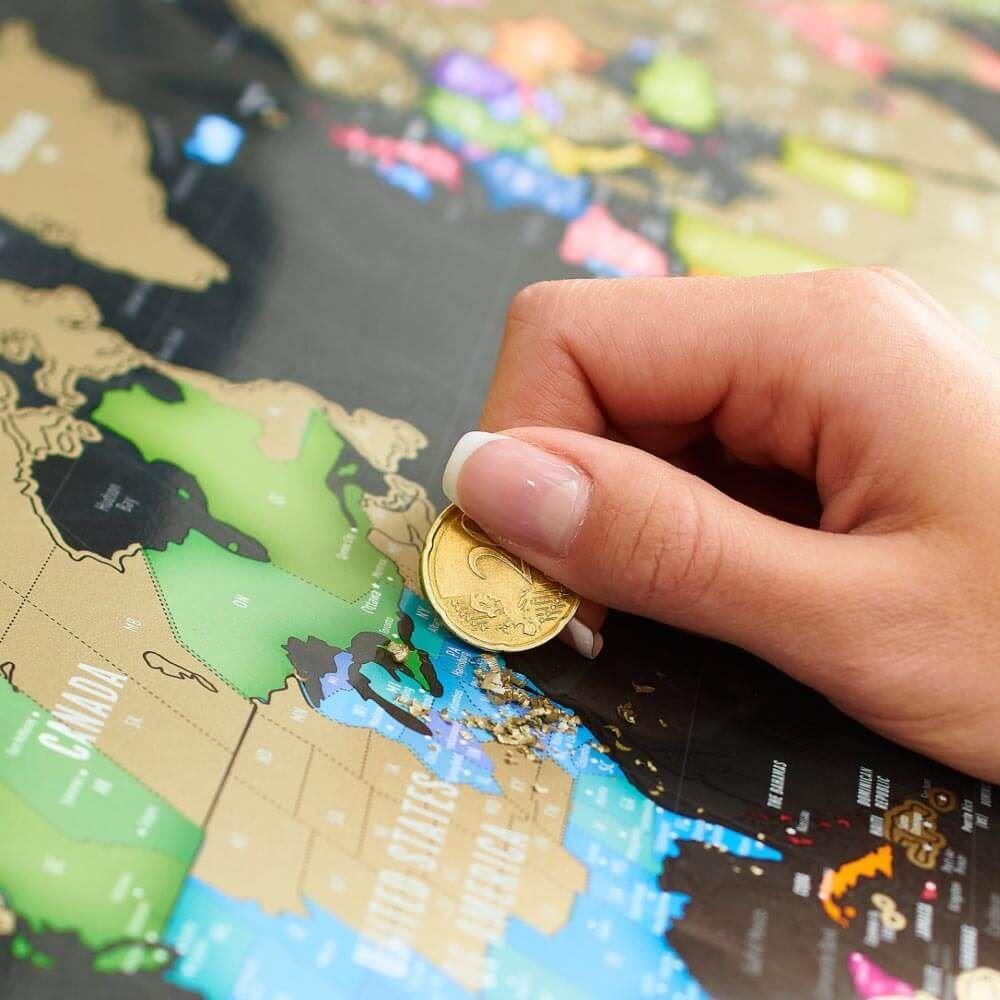 Na stieracej mape si môžete vyznačiť všetky štáty, ktoré ste už navštívili, alebo sa ich práve chystáte preskúmať. Zábavná hra pre vášnivých cestovateľov aj pekná bytová dekorácia, vďaka ktorej budete mať prehľad o všetkých cestách.