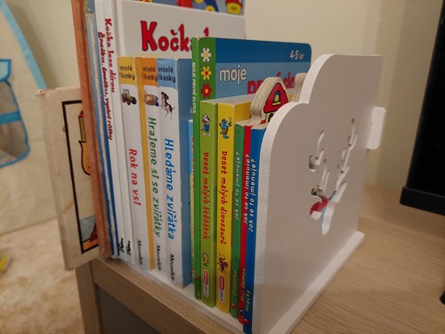 Stojan na knihy je navrhnutý tak, aby poskytoval efektívne a jednoduché riešenie na ukladanie predmetov v obmedzených priestoroch, ako sú detské izby, najmä detské stoly. Jeho kompaktné rozmery a ľahká konštrukcia umožňujú jednoduché prenášanie a flexibilné umiestnenie. Navyše jeho roztomilý a hravý dizajn prináša veselý prvok do každej miestnosti a zároveň slúži ako praktický pomocník pre malých študentov a ich rodičov, ktorí hľadajú organizovaný a uprataný pracovný priestor. Stojan na knihy ponúka jednoduchý, ale účinný spôsob, ako udržať poriadok a zároveň dodať estetický prvok každému priestoru.