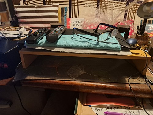 • Pod stojanom je dostatok priestoru pre klávesnicu, poznámkový blok alebo iné drobnosti