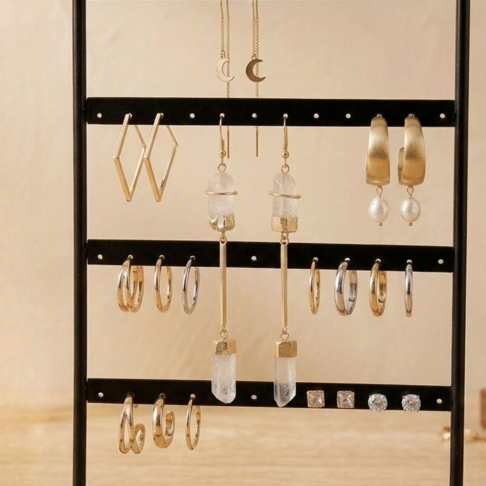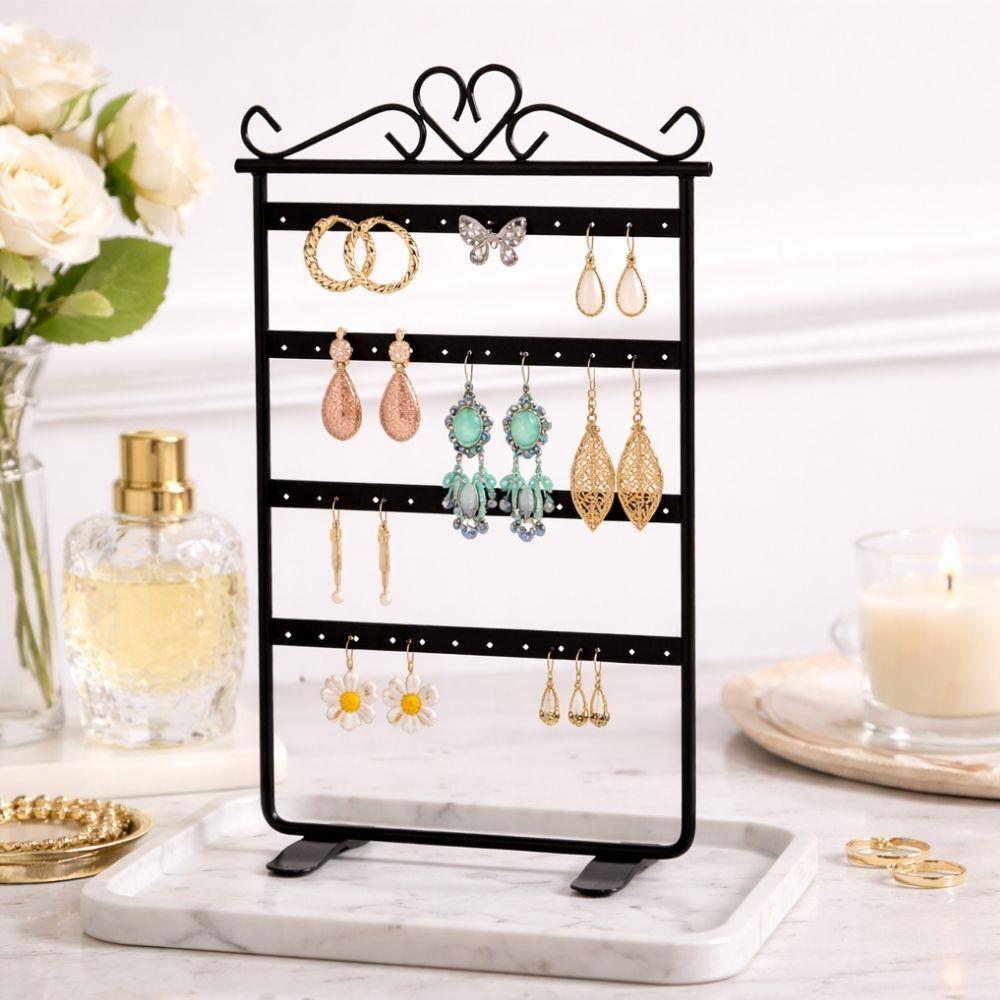 Každá žena miluje šperky a náušnice. Keď sú uložené v jednej veľkej šperkovnici, vznikne z nich akurát zamotaná a neprehľadná kôpka. Jednoducho neporiadok, v ktorom sa už nevyznáte. Vyriešte tento problém a zaobstarajte si praktický stojan určený na šperky a náušnice. Do stojana možno umiestniť až 24 párov náušníc. Budete ich mať krásne usporiadané, prehľadné a spolu na jednom mieste. Stojan na šperky a náušnice sa stane vaším najlepším priateľom!