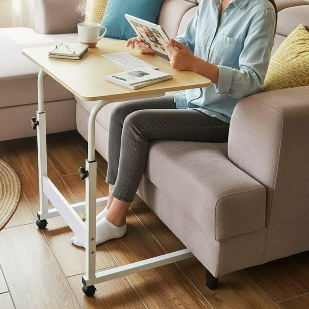 Nastaviteľná výška umožňuje stolík prispôsobiť vašim potrebám, je teda ideálny na prácu s notebookom, servírovanie jedla či kreatívne aktivity. Jeho minimalistický dizajn skvele zapadne do akéhokoľvek interiéru, bez toho, aby zaberal veľa miesta. Pracovná plocha ponúka dostatok priestoru na všetko potrebné, od kníh a šálky kávy po menší podnos s občerstvením. Jednoduchá údržba povrchu zabezpečí, že stolík bude vždy vyzerať ako nový.