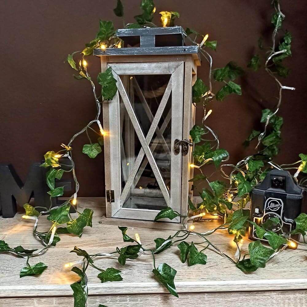 Jednoducho ho zaveste alebo oviňte, ako sa vám páči, a potom už len sledujte, ako sa svetielka okolo lístkov rozsvietia! Na svietenie navyše nepotrebujete zásuvku, pretože reťaz je napájaný na tužkové batérie. Zabudnite na usychajúce a opadávajúce listy a zaobstarajte si tento krásny reťaz, ktorý vám zostane svieži navždy, a k tomu vás svojim svetlom poteší vždy, keď si budete chcieť dopriať tú pravú atmosféru domova.