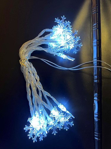 Svetelný reťaz so snehovými vločkami vyžaruje jemné svetlo a vytvára rozprávkovú romantickú atmosféru. Snehové vločky sú krásnou dekoráciou na vianočné stromčeky, verandu, sviatočné večierky. Svoje využitie tiež nájdu v obývačke, spálni či kancelárii. Svetielka vás potešia teplým bielym svetlom, ktoré je nielen príjemné na pohľad, ale tiež si môžete nastaviť dva režimy svietenia.