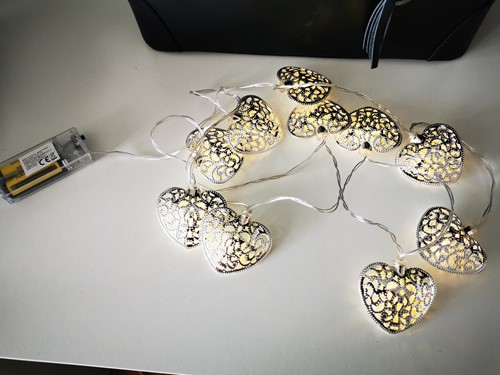 Tento svetelný LED reťaz s kovovými srdiečkami premení váš interiér na kúzelné miesto plné pohody a svetla. Jemne prepracované srdcia s romantickým vzorom majú teplé biele svetlo, ktoré vytvorí príjemnú a hrejivú atmosféru – či už počas sviatočných večerov, letných večierkov alebo ako dekorácia do spálne. Napájanie na batérie vám umožní rozmiestniť svetielka úplne bez obmedzení.  Dekoratívne svietiace srdiečka sú ideálne ako darček, svadobná dekorácia alebo ako štýlový doplnok domova.