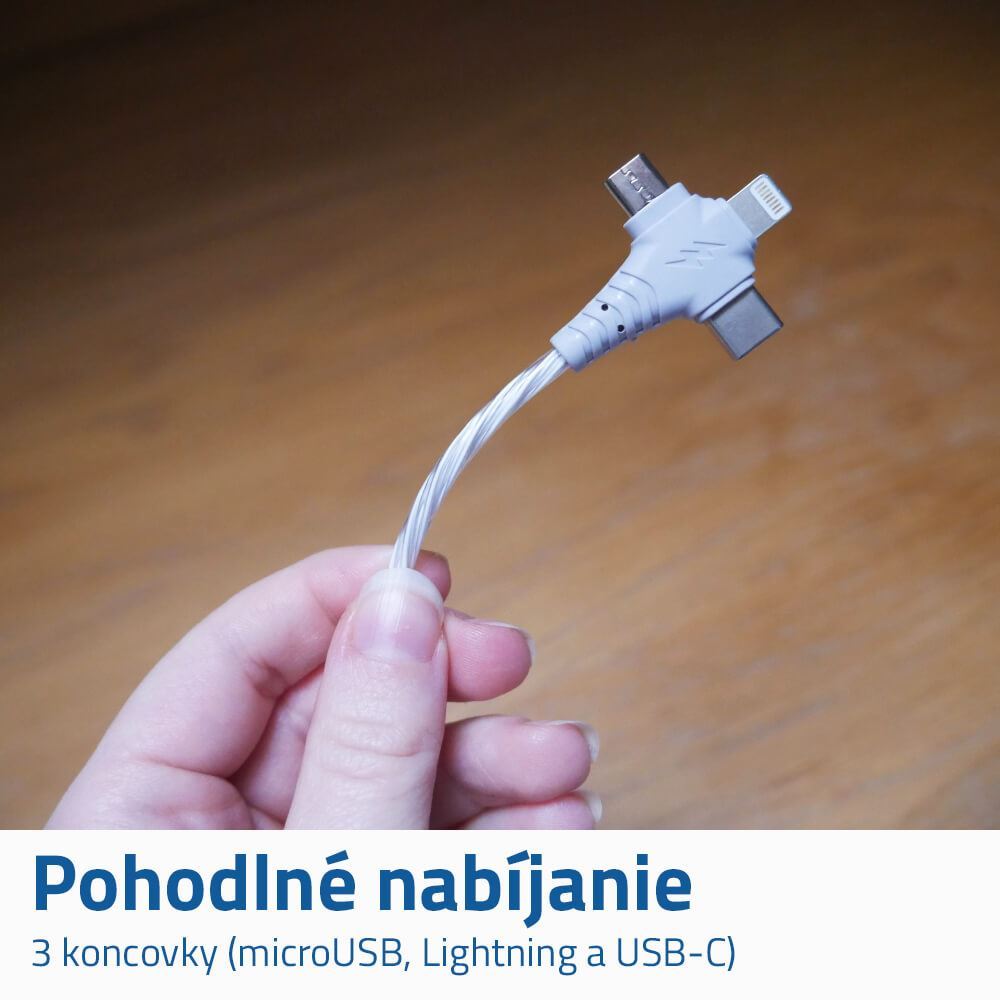 • 3 koncovky (microUSB, Lightning a USB-C)