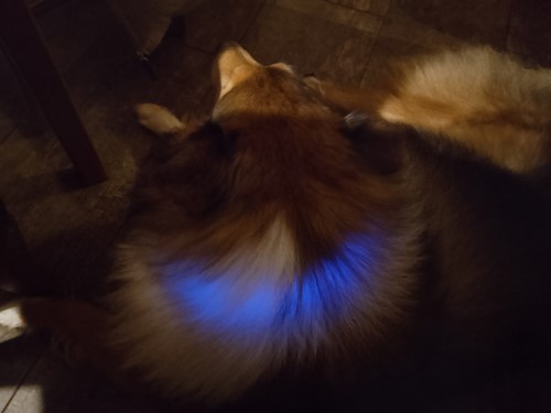 Můj pes má svatozář vypadá jak andílek jak má podsvícenou tu srst.