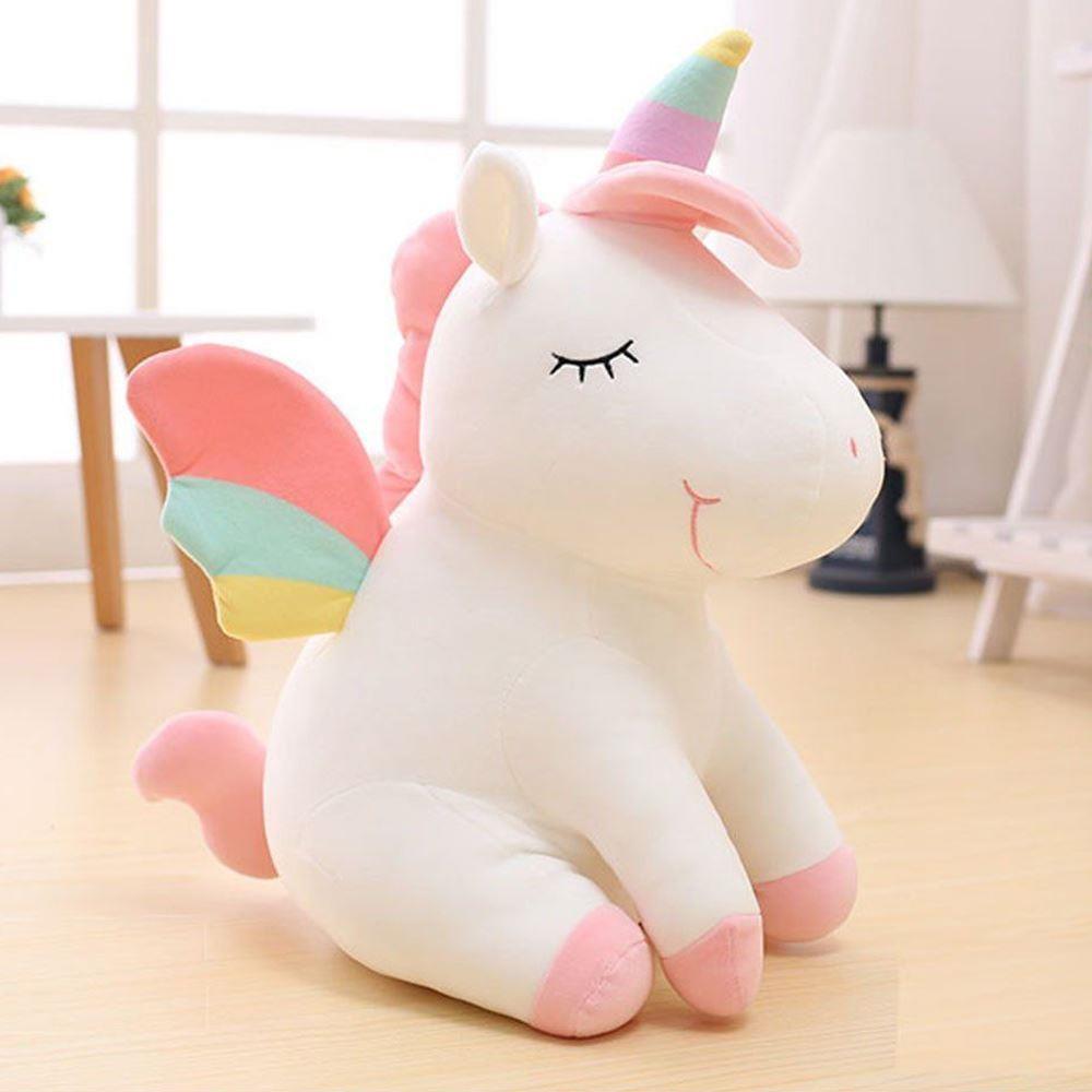 Žiarivý, plyšový jednorožec nesmie chýbať v žiadnej detskej izbe! Farebná hriva, rozkošný ružtek a bucľaté telo prinášajú pri objatí radosť a pohodlie Vašich detí. Vyčarí úsmev na každej detskej tvári.