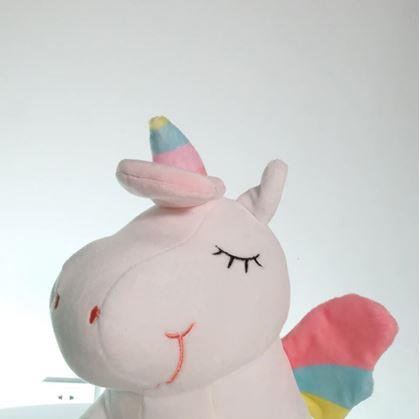 Svetielkujúciho jednorožca si Vaše deti obľúbia a nebudú bez neho chcieť nikam ísť. Je vhodný ako kamarát na hranie, zaspávanie aj na cesty. Deti si obľúbia hebký a jemný materiál. Jednorožec obsahuje svietiace žiarovky. Po stlačení pacičky začne svietiť, po ďalšom stlačení sa vypne.
