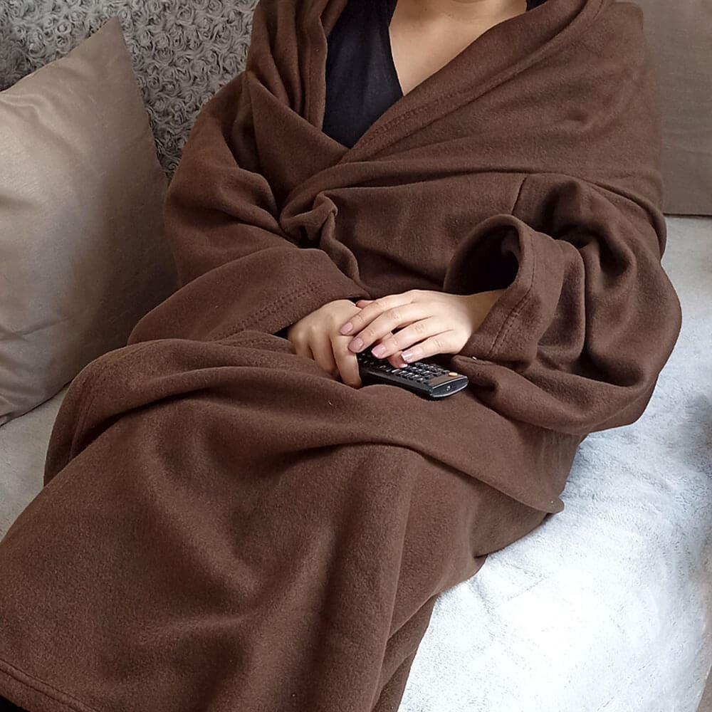 Televízna deka! Darček pre celú rodinu! Oveľa lepšia než obyčajná deka! A to vďaka rukávom, ktorými je vybavená. Úplne každý si ju zamiluje. Deka je vyrobená z príjemného materiálu, ktorý dokonale zahreje. S dekou vás čaká len samé pohodlie, komfort a perfektná relaxácia. V tejto deke sa budete oveľa lepšie pohybovať. Najlepšie napríklad pri otáčaní stránok knihy, jedení nejakej pochutiny, práci na televízii, hraní na playstatione alebo prepínaní televíznych kanálov.