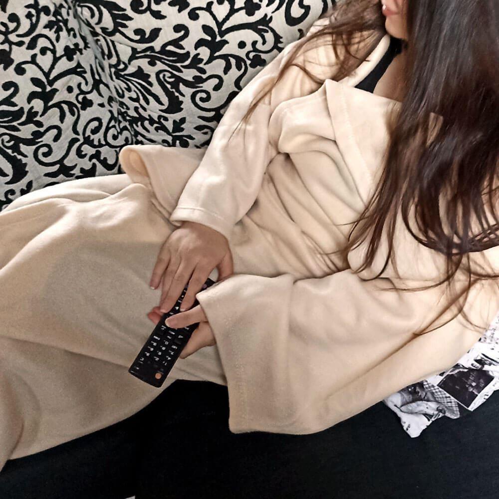 Televízna deka! Darček pre celú rodinu! Oveľa lepšia než obyčajná deka! A to vďaka rukávom, ktorými je vybavená. Úplne každý si ju zamiluje. Deka je vyrobená z príjemného materiálu, ktorý dokonale zahreje. S dekou vás čaká len samé pohodlie, komfort a perfektná relaxácia. V tejto deke sa budete oveľa lepšie pohybovať. Najlepšie napríklad pri otáčaní stránok knihy, jedení nejakej pochutiny, práci na televízii, hraní na playstatione alebo prepínaní televíznych kanálov.