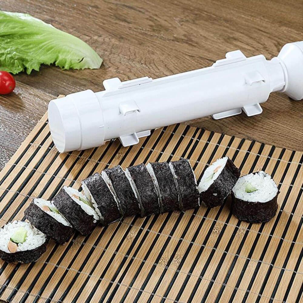 Manipuláciu s touto pomôckou zvládnete rýchlo - vaša jediná úloha je formu naplniť ryžou a pripravenými surovinami, tie nakrájajte na dlhšie prúžky. Zvoliť môžete napríklad lososa, tuniaka, uhorku alebo avokádo. Formu s náplňou uzavrite a pomocou piesta náplň vytlačte na pripravenú riasu. Tú potom stačí len zabaliť, výslednú rolku nakrájať a je hotovo! Sushi odporúčame podávať so sójovou omáčkou.