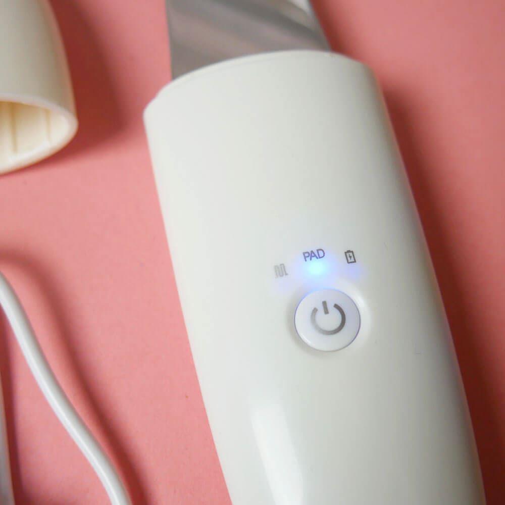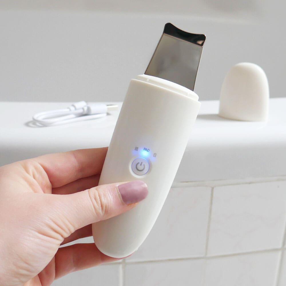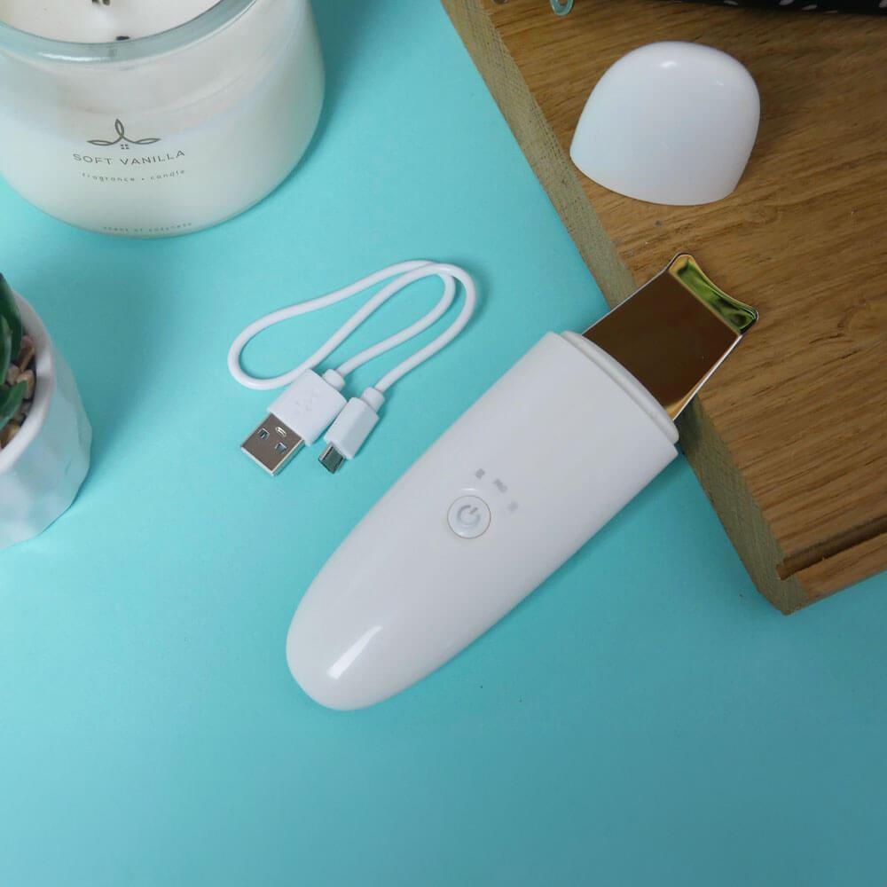 Ultrazvuková špachtľa je vhodná pre všetky typy pleti. Jej použitie je veľmi jednoduché. Po odlíčení pleti stačí navlhčiť tvár a špachtľu priložiť pod uhlom 45 stupňov. Potom je možné jemnými pohybmi vyčistiť celú tvár. Tlačidlom môžete prepínať medzi 2 režimami. Po vybití stačí jednoducho nabiť pomocou USB kábla.