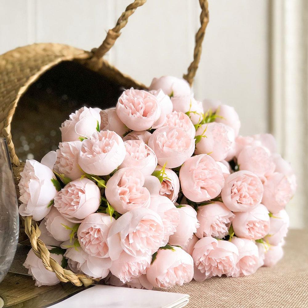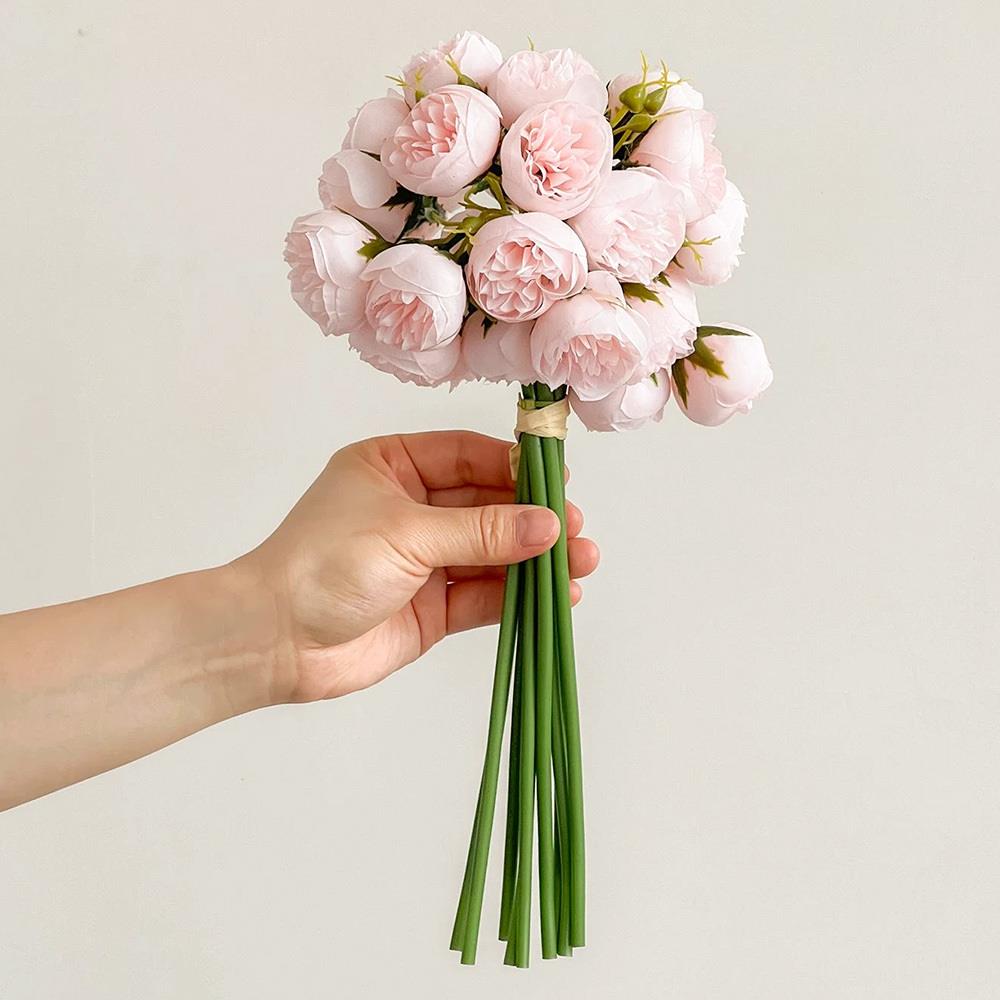 Umelá kytica pivoniek je krásna dekorácia pre všetkých, ktorí milujú kvety, ale nechcú riešiť ich pravidelnú výmenu a starostlivosť. Jeden zväzok obsahuje 9 jemne ružových pivoniek, ktoré pôsobia romanticky, sviežo a veľmi elegantne.