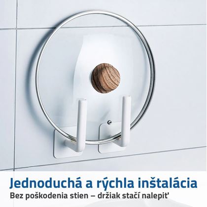 Držiak je v bielej farbe, ktorá dobre ladí so všetkými ostatnými farbami. Nenaruší tak štýl vášho interiéru. Inštalácia držiaka je naozaj jednoduchá. Držiak jednoducho nalepíte na požadované miesto na stene alebo na obklade v kuchyni. Týmto spôsobom zabránite zbytočnému vŕtaniu a poškodeniu stien či obkladačiek.