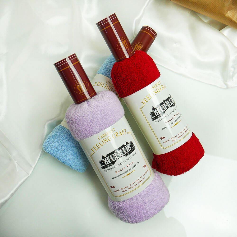 Poznáte niekoho, kto je milovníkom vína? Prečo takého človeka nepotešiť vtipným darčekom – uterákom, ktorý je naaranžovaný ako fľaša vína. Materiál je veľmi príjemný na dotyk. Využijete ho v každej domácnosti ako uterák na ruky.