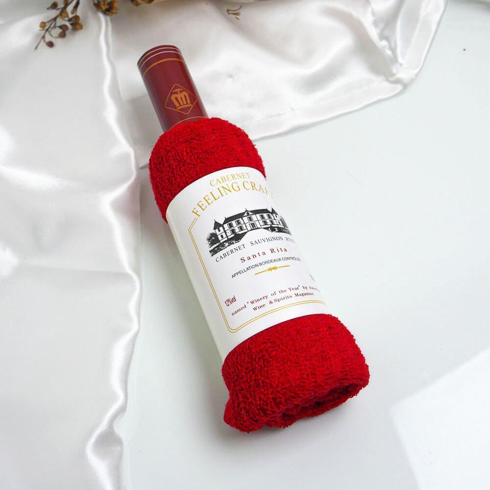Uterák v darčekovom balení ako fľaša vína - červený